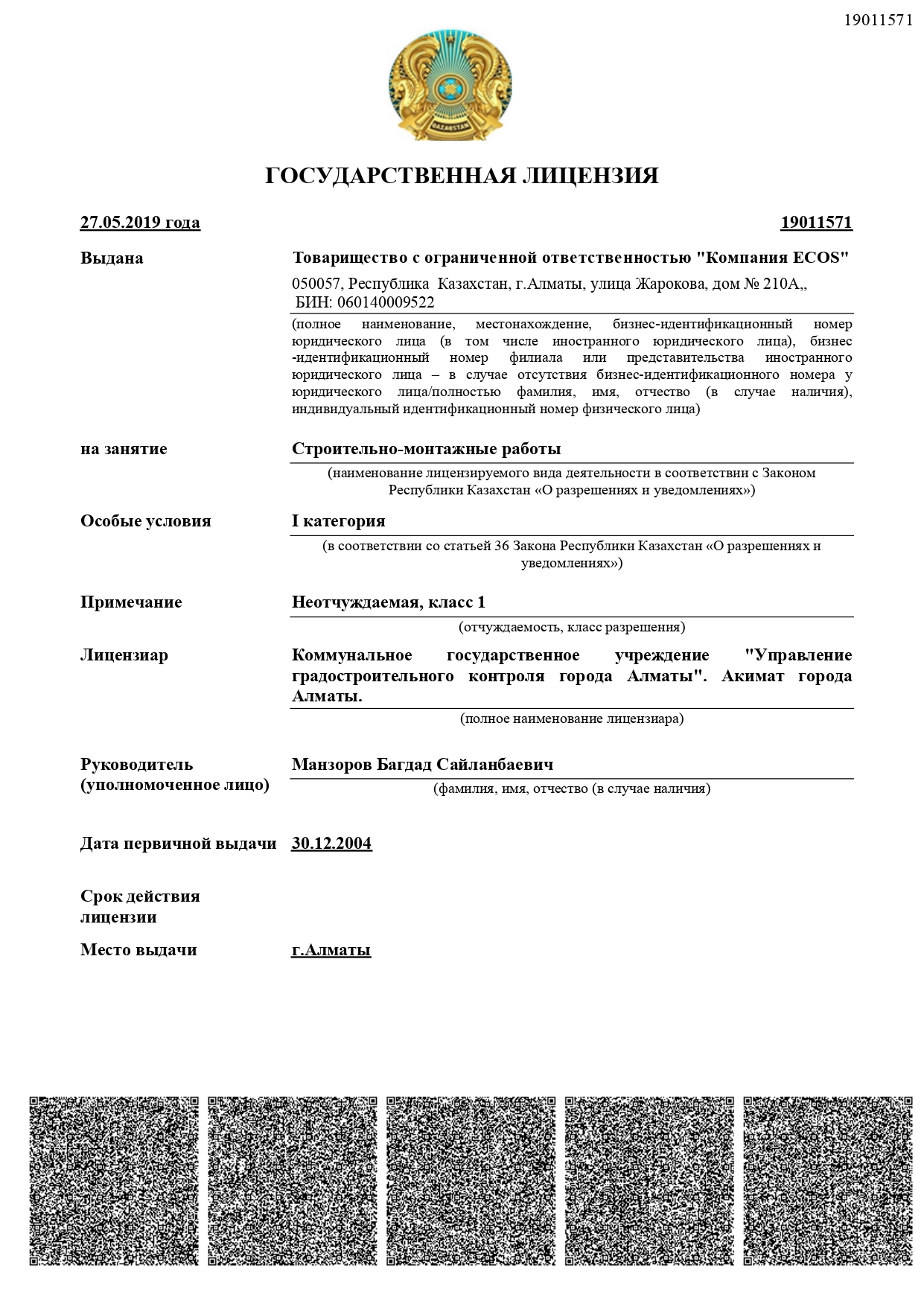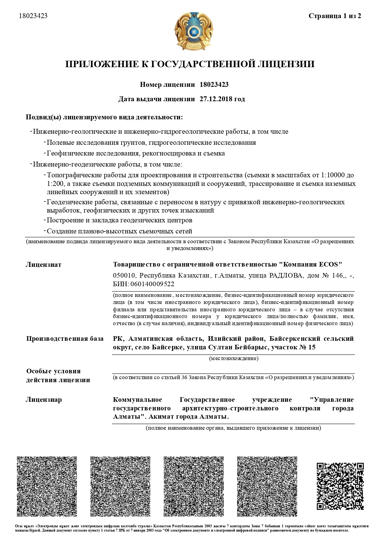 - Лицензии 1-ой категории на занятие Строительно-монтажными работами и Проектной деятельностью, Государственная лицензия 1 класса, на занятие изыскательской деятельностью.