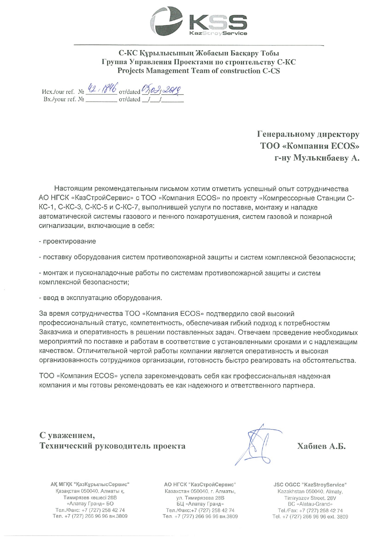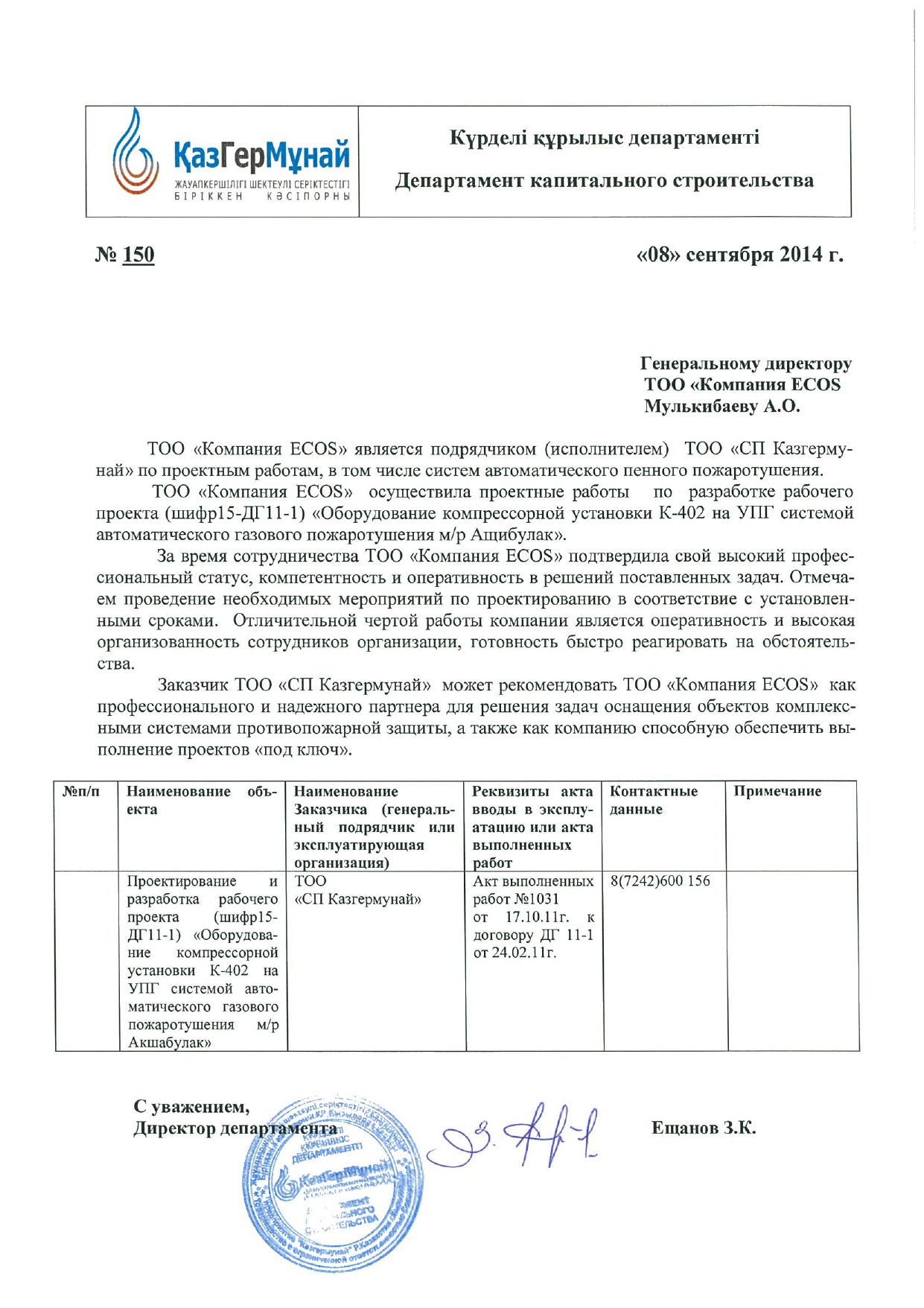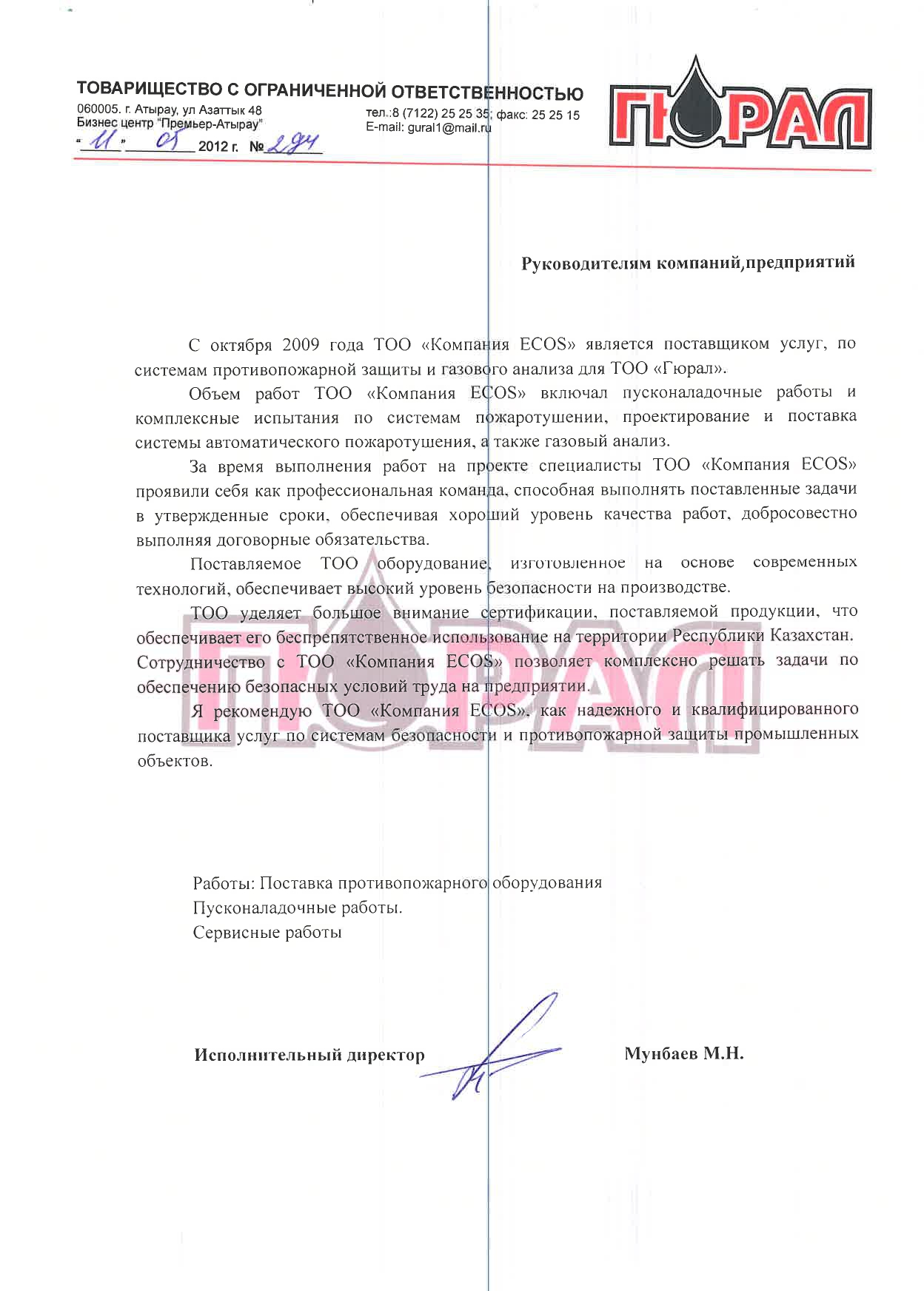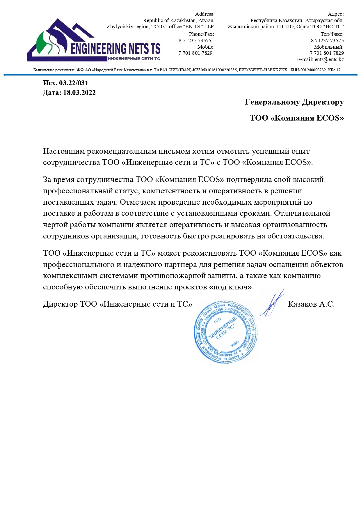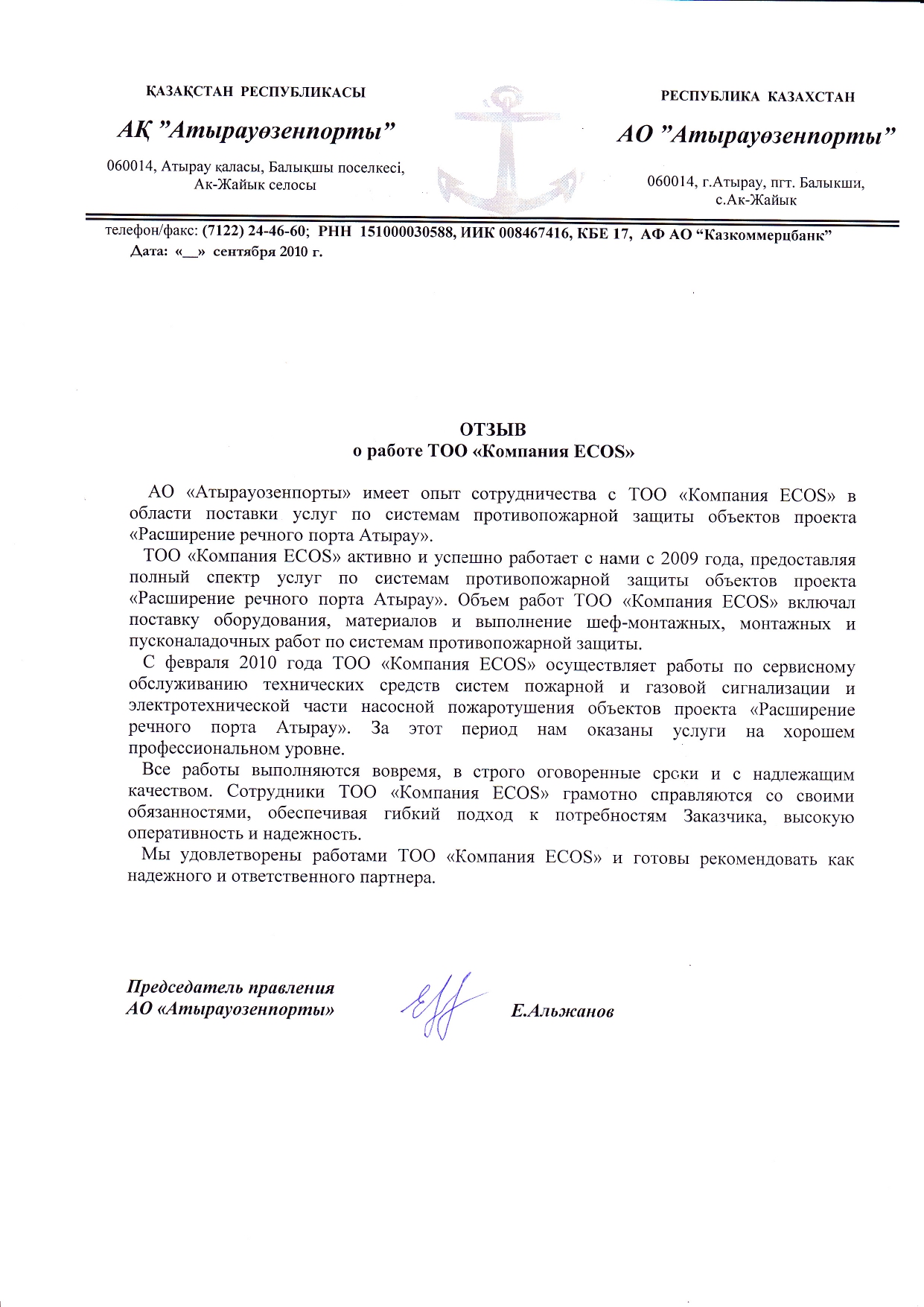 С уважением, ТОО «Компания «ECOS»