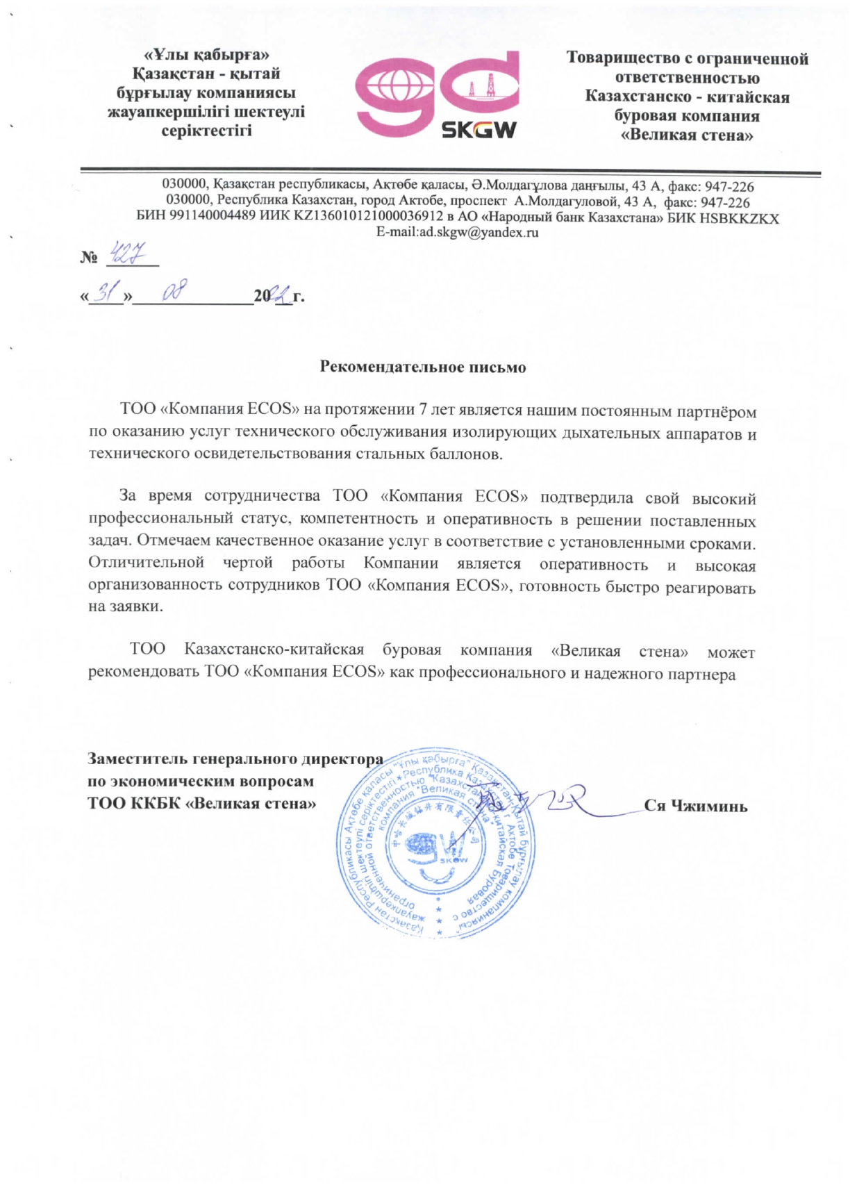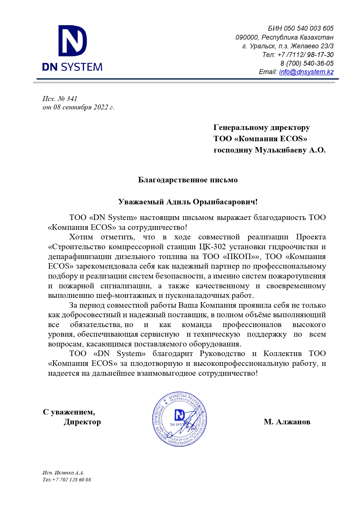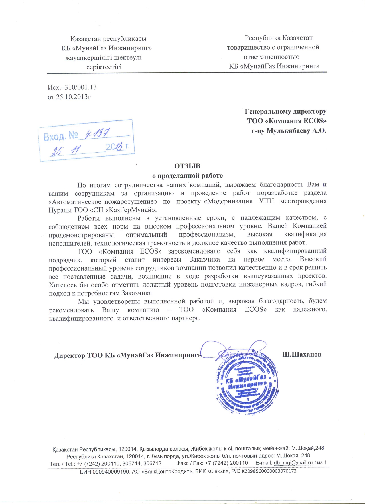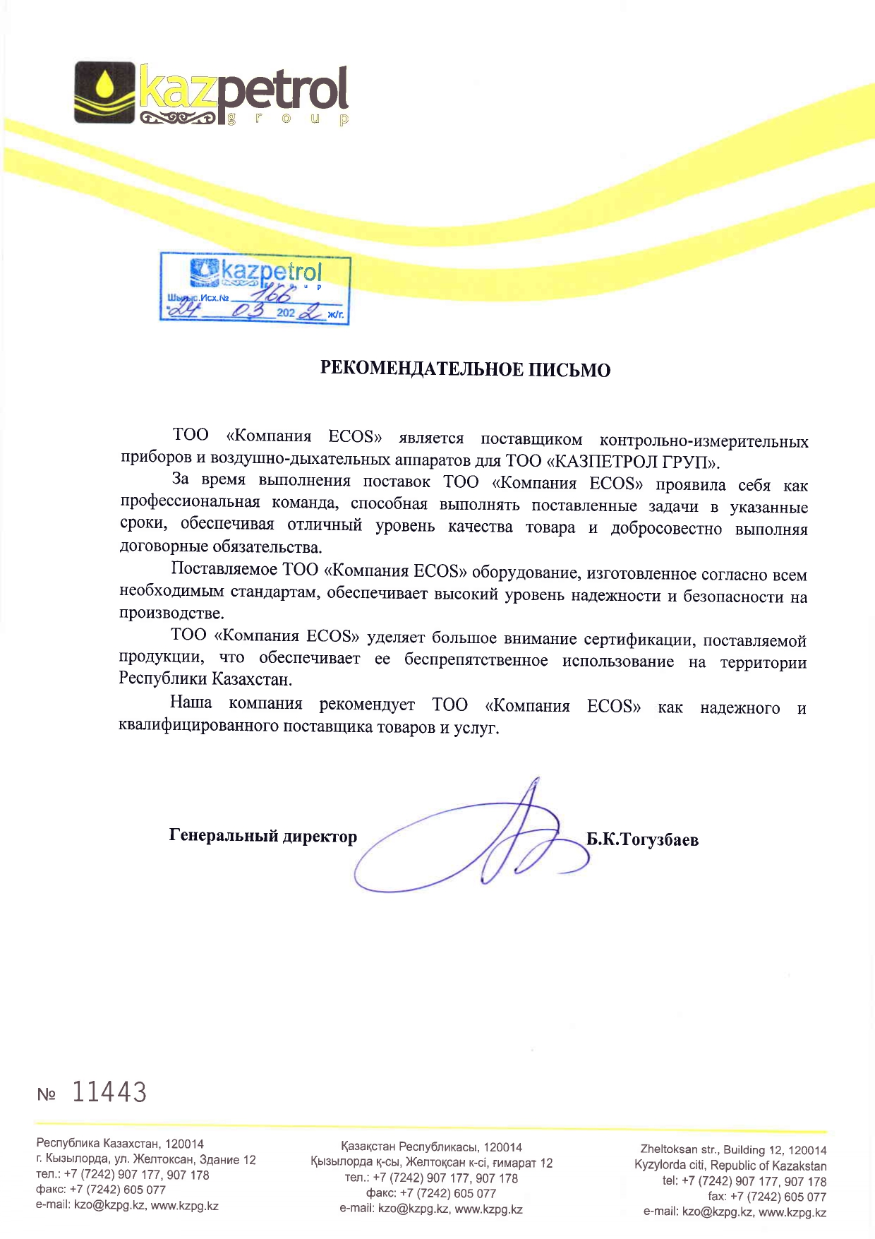 С уважением, ТОО «Компания «ECOS»