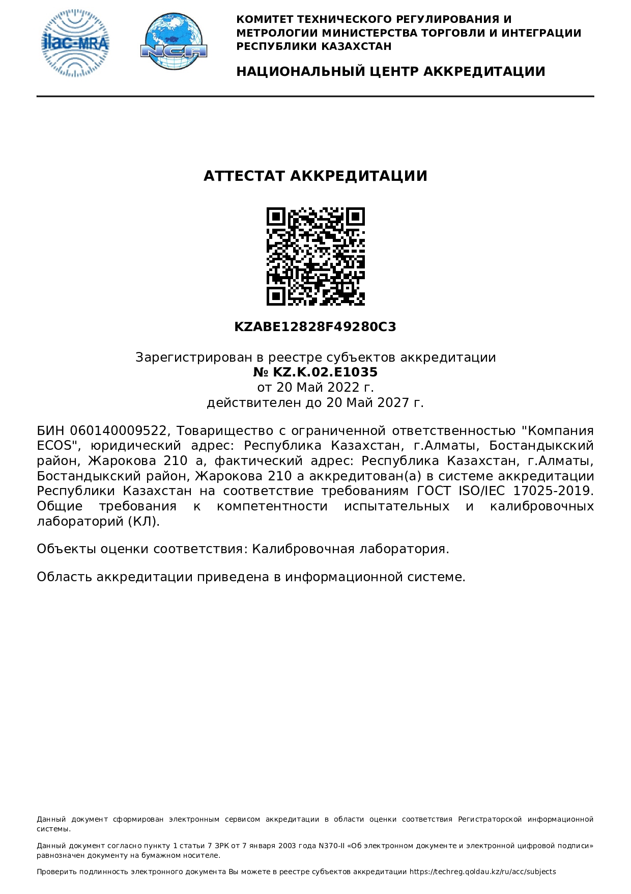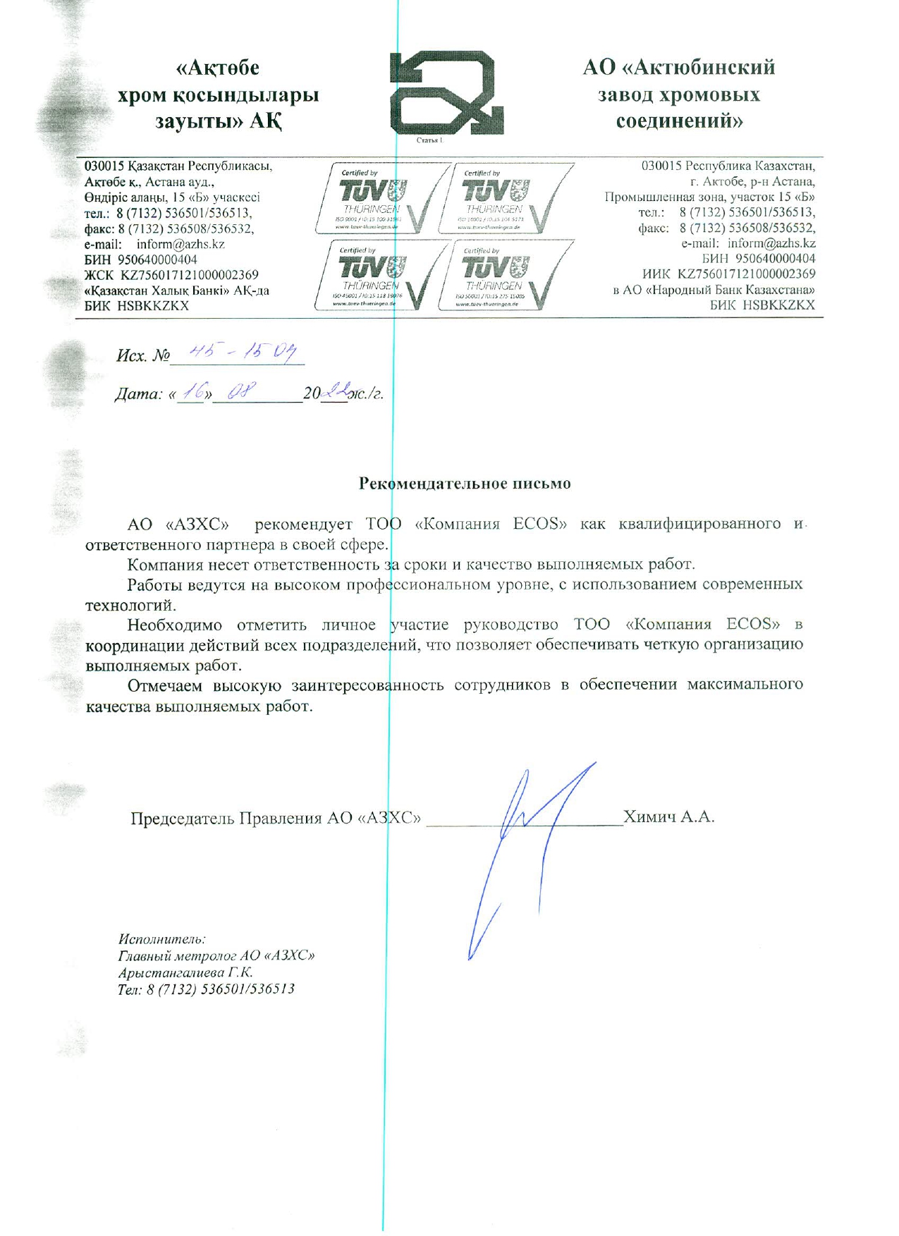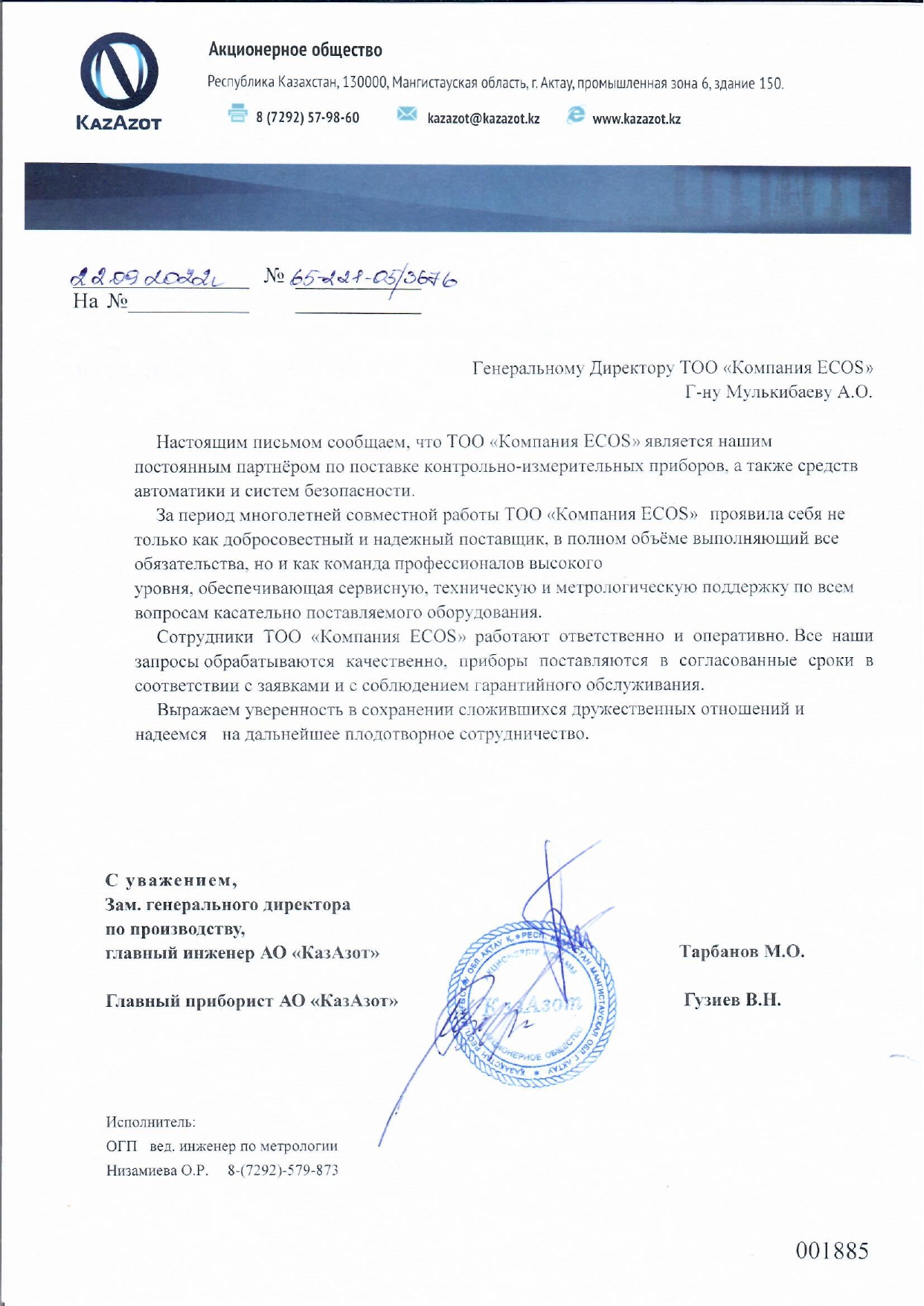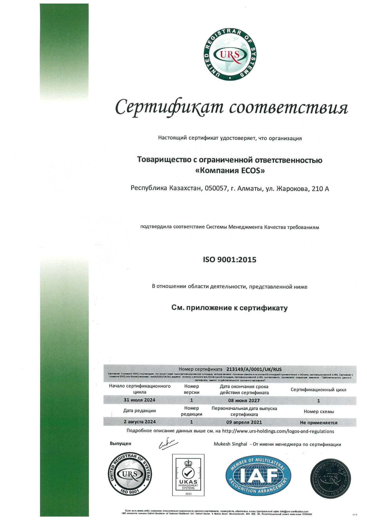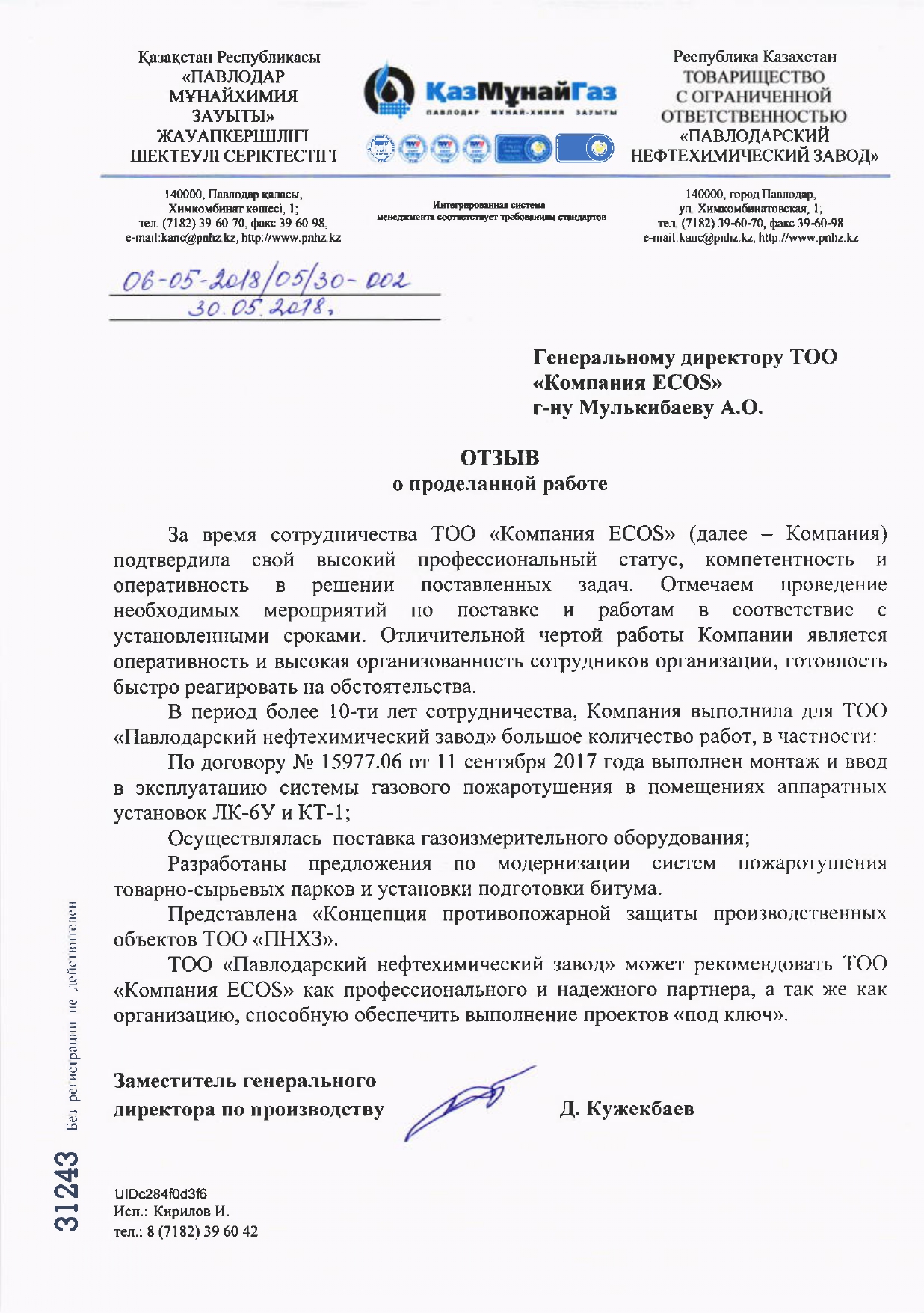 С уважением, ТОО «Компания «ECOS»