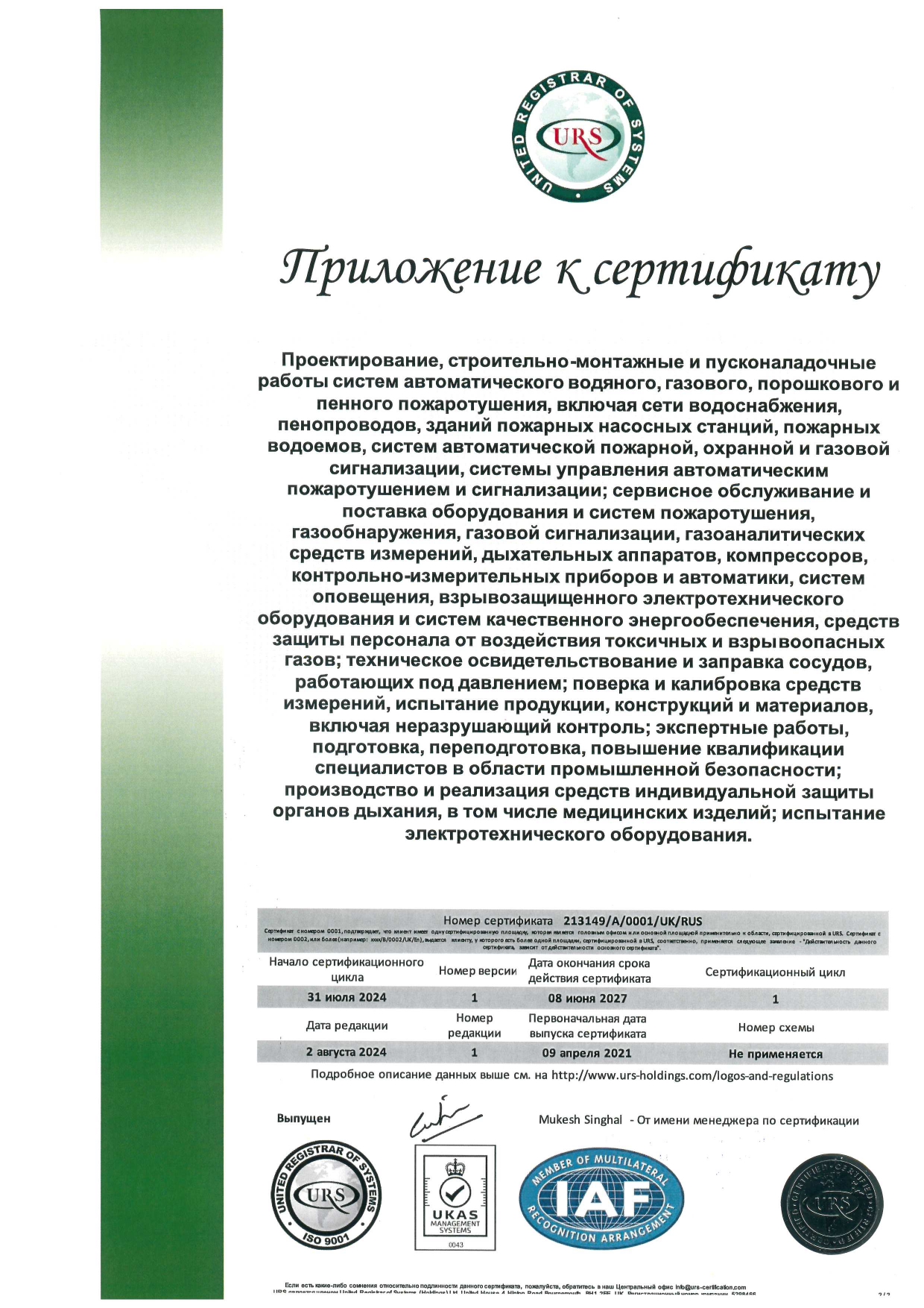 - Аттестат на право проведения работ в области промышленной безопасности;