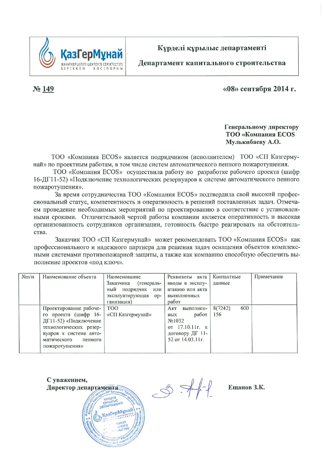 По вопросам проектирования, инжиниринга: engineering@ecos.kz